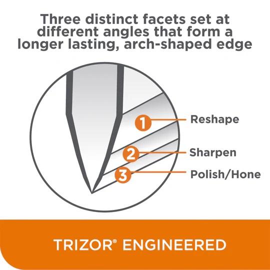 See teritaja parandab lõiketulemusi, luues 3 erinevat tahku, mis on asetatud erinevate nurkade alla, et moodustada kauakestvam ja üliteravam serv.